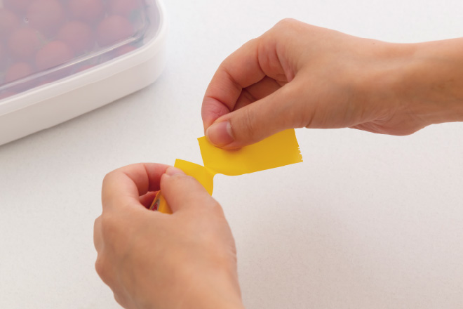 テープは室温で貼ってください。貼ったままであれば冷蔵庫(4℃)、冷凍庫(-18℃)内でも使用することができます。