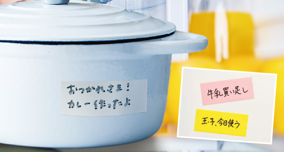家族に共有したいイベントやタスクも、「ディアキッチン™ワザアリ™テープ」にサッとメモ。
